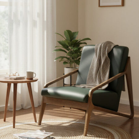 Glitzhome Mid Century Hunter Green Accent Armchair| Pikker Mid-Century Modern PU Leather Armchair |