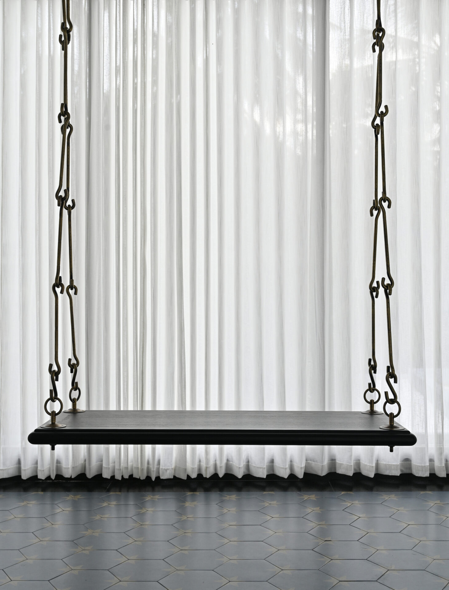 The Obsidian Ebony Rectangular Swing is a beautifully crafted wooden swing finished in a rich, deep black that brings a sleek, modern touch to classic design. Its sturdy wooden frame offers robust support with clean, straight lines emphasizing its rectangular form, ideal for traditional porches, patios, or indoor spaces.