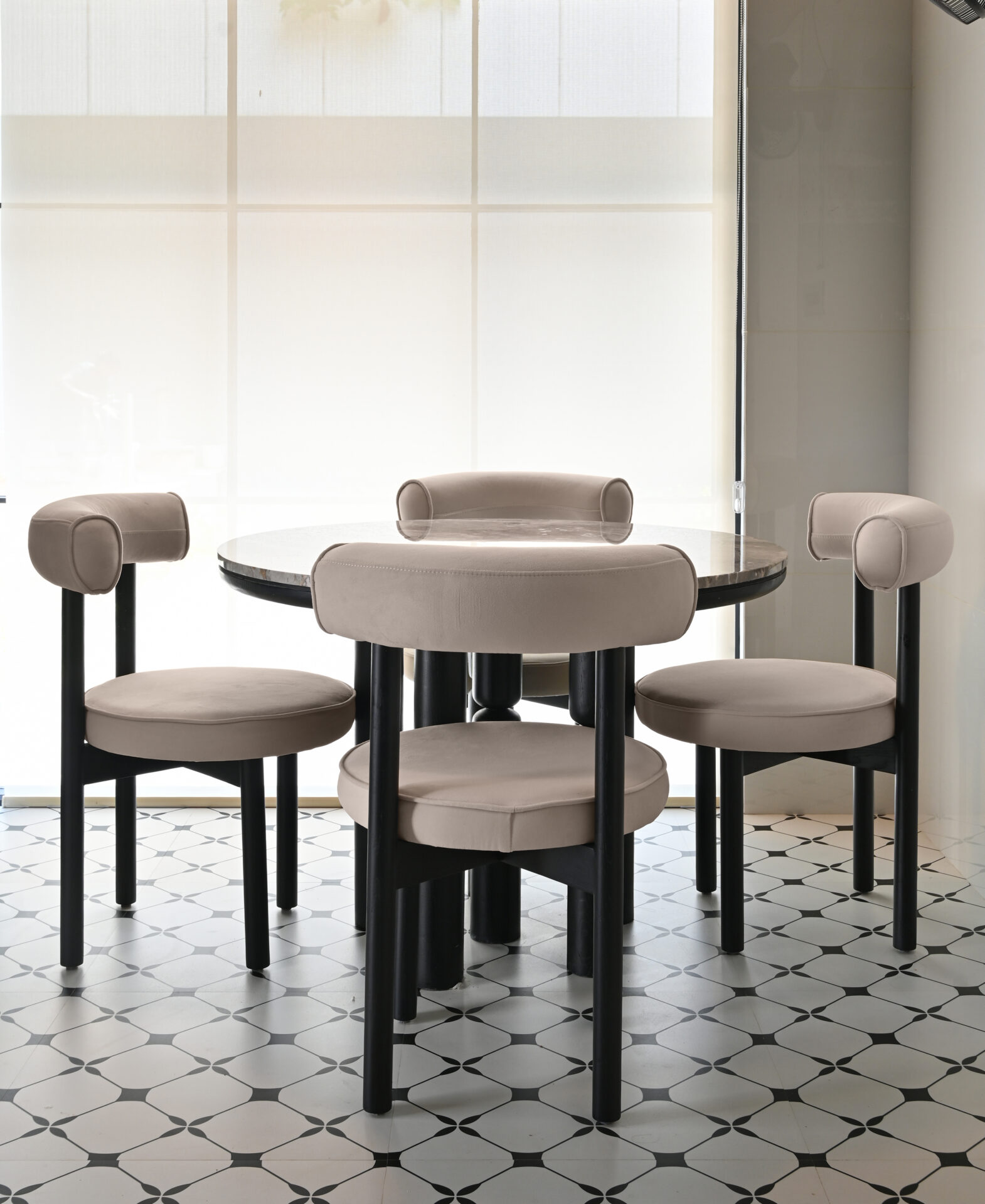Crafted with high-quality fabric and supported by strong, premium wooden legs, this chair guarantees durability and stable balance for everyday use. Its smooth, minimal silhouette adds a touch of elegance, making it an ideal choice for dressing rooms, dining chairs, bedrooms, living rooms, walk-in wardrobes, studios, or boutique spaces. The compact and lightweight structure allows easy movement and perfect placement even in smaller spaces.